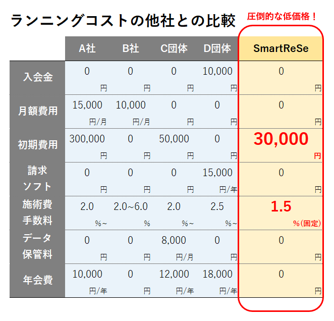 自社で運営する治療院のために開発したソフトだからこそ、本来大幅に必要な営業費や販売管理費を削減できているため、この価格での提供が可能です。